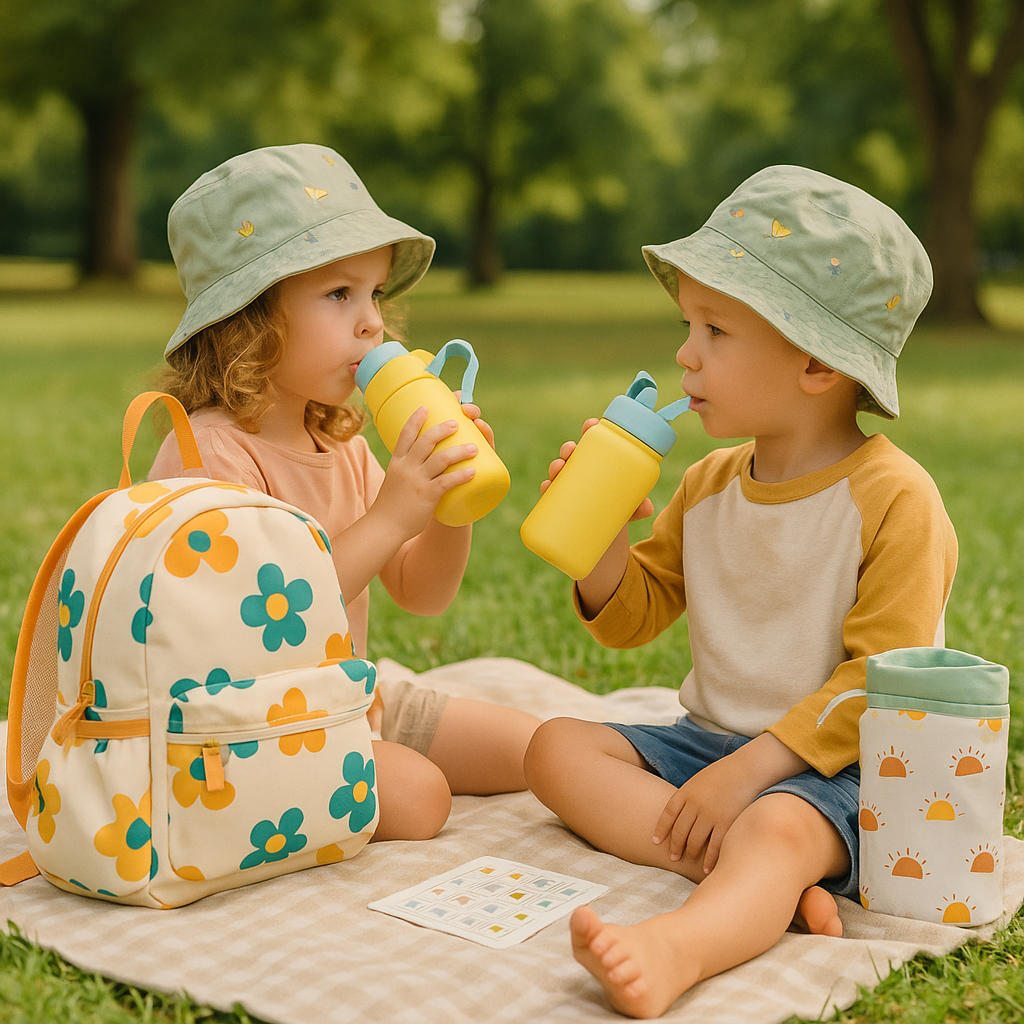 Each pack is carefully curated with the essentials families actually need — UPF-certified bucket hats for sun safety, stainless steel bottles for health, wet bags to replace single-use plastic, name labels for organisation, and daily routine cards for consistency. Every item is chosen to make life easier for families, educators, and centres alike.
